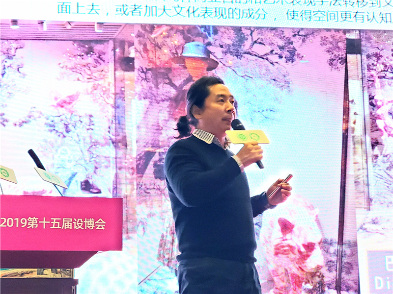 展會(huì)上,珠海市環(huán)藝裝飾總經(jīng)理靳越暉在2019第四屆百?gòu)?qiáng)設(shè)計(jì)院院長(zhǎng)合作與創(chuàng)新發(fā)展高峰論壇活動(dòng)中進(jìn)行了30分鐘的主旨演講,主題為《無設(shè)計(jì),不文化》。